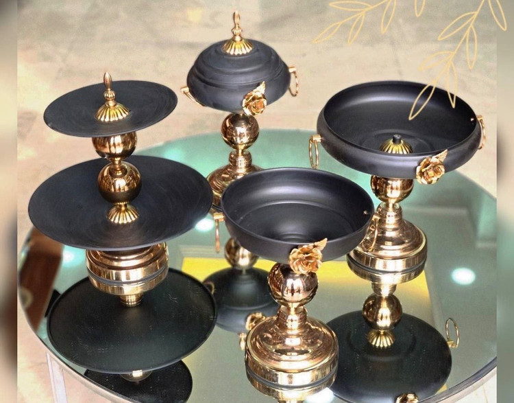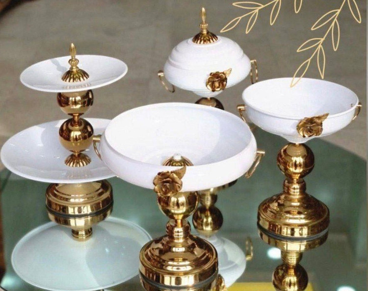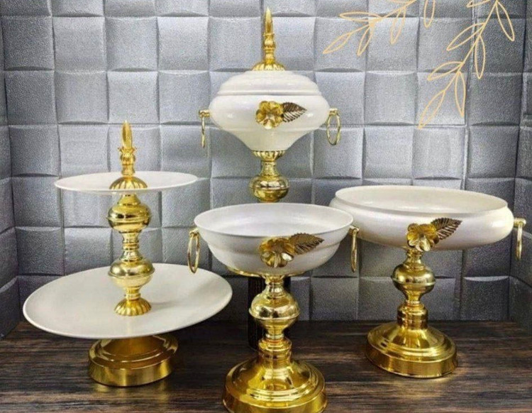 ❤️✔️✅ ست پذیرایی 4 تکه گل رز جنس فلزی آبکاری فورتیک، هر ست شامل میوه خوری / شیرینی خوری / آجیل خوری / شکلات خوری ،ابعاد:شیرینی خوری ٣٠*۳۳ سانت/ میوه خوری٢۳*۲۵ سانت / شکلات خوری ۲۰*۲۴ سانت / آجیل خوری ۱۵*۳۸ سانت / سرویس پذیرایی با طراحی شیک و زیبا 😍 ☑️